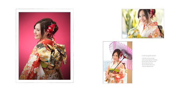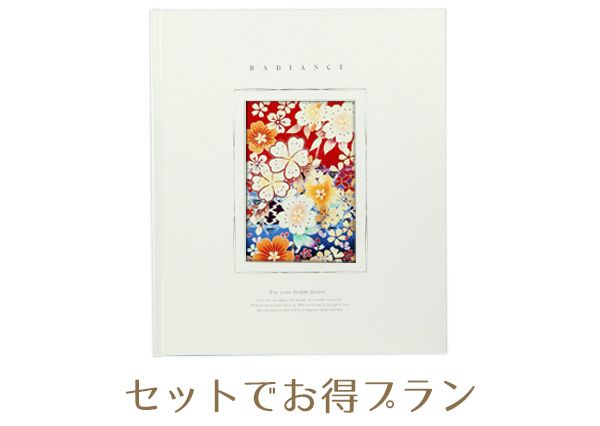 お着物の柄が入ったワンランク上の高級アルバムと、そのアルバムに使用されたお写真のデータがセットになった、お得なプランです。