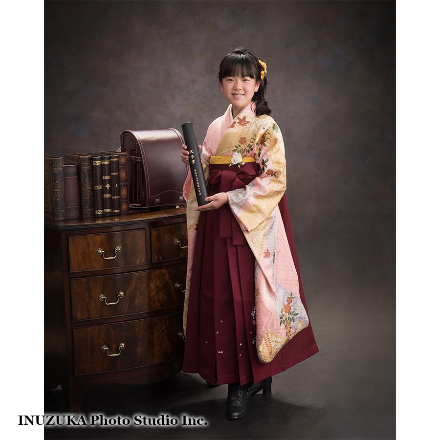 いぬづか写真室で前撮りで卒業写真の撮影をすると、卒業式当日の袴レンタルも可能です!前撮りとは違う衣装にもして頂けます♪