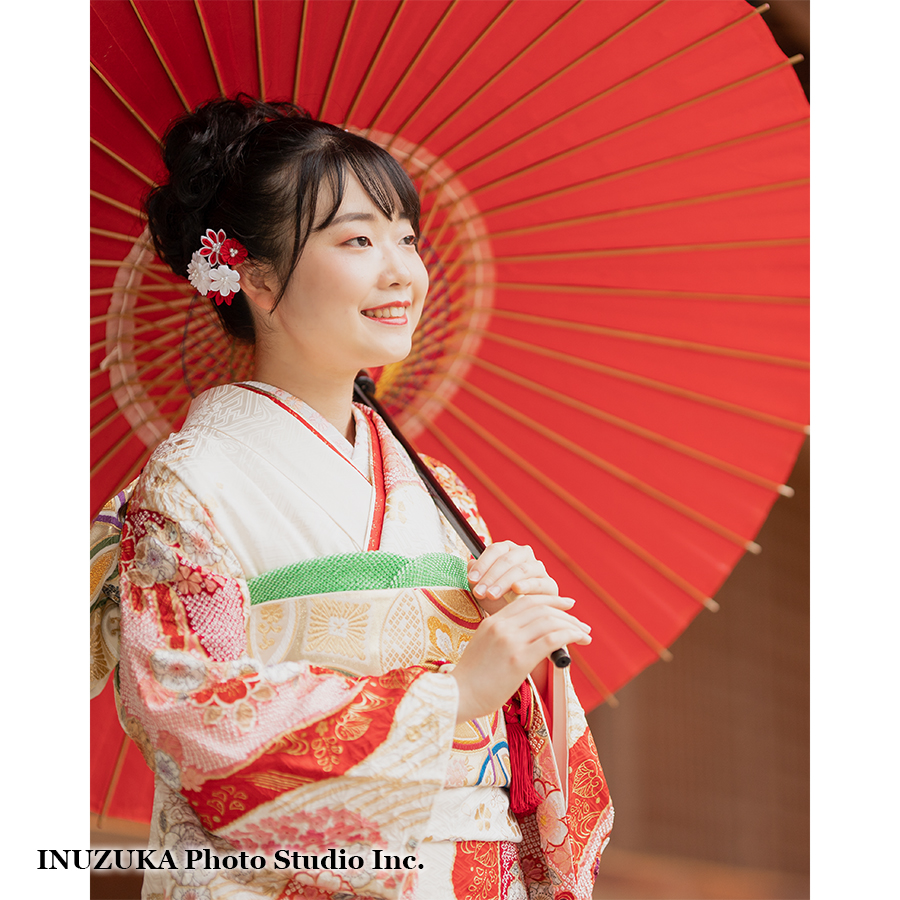 着物が着くずれる前の、着付けがきれいな状態で記念写真に残せます。