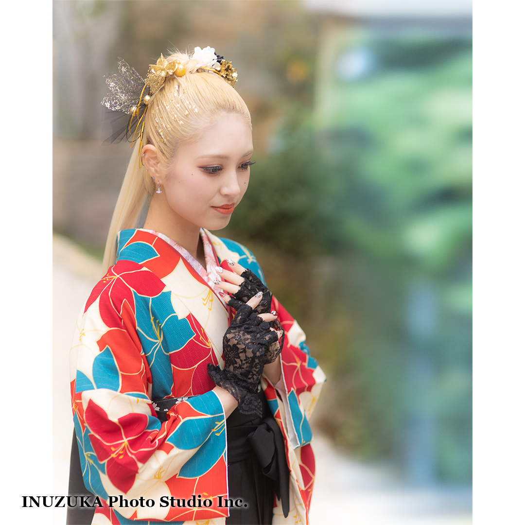 今回は卒業袴の撮影でしたが、スタジオでの撮影はもちろん、お外でも様々なポーズを何カットも撮っていただき、その中から気に入った写真を選んでアルバムを作っていただけたため、大変満足いたしました。
