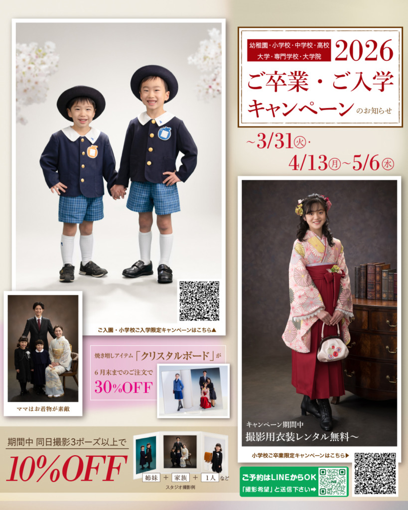 内容:入学卒業記念3ポーズ撮影で撮影料10%OFF